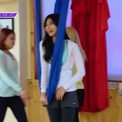플라잉요가 하러 갔다가 쯔위 키에 맞는 해먹에서 기웃거리다