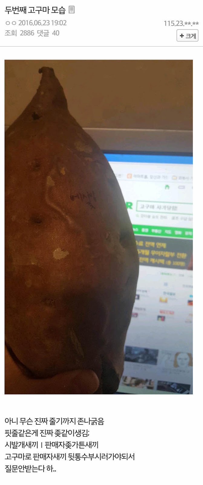 고구마 구입한 디시인 주저리주저리 조회 0 원본보기 0 인기도 점수 0 0 요약 고구마 구입한 디시인 원본 페이지로 이동 추천 콘텐츠 소희 쎄씨 화보.jpg 0 군도날드 jpg 0 남규리닮은 사람 0 기습 공격이냥 0 숲쿠류 0 반도의 흔한 헤어스타일 자랑 0 관련 이미지 클럽움짤 몇개 6926 야릇한 얼굴과.. 6256 이런엉덩이 처음만져봄 10305 체육녀들의 바디클라스 6262 상당히 아쉬운 결말 5408 지스타 이은혜 3702 홀딱벗구 셀카 7351 BJ 애교 6140