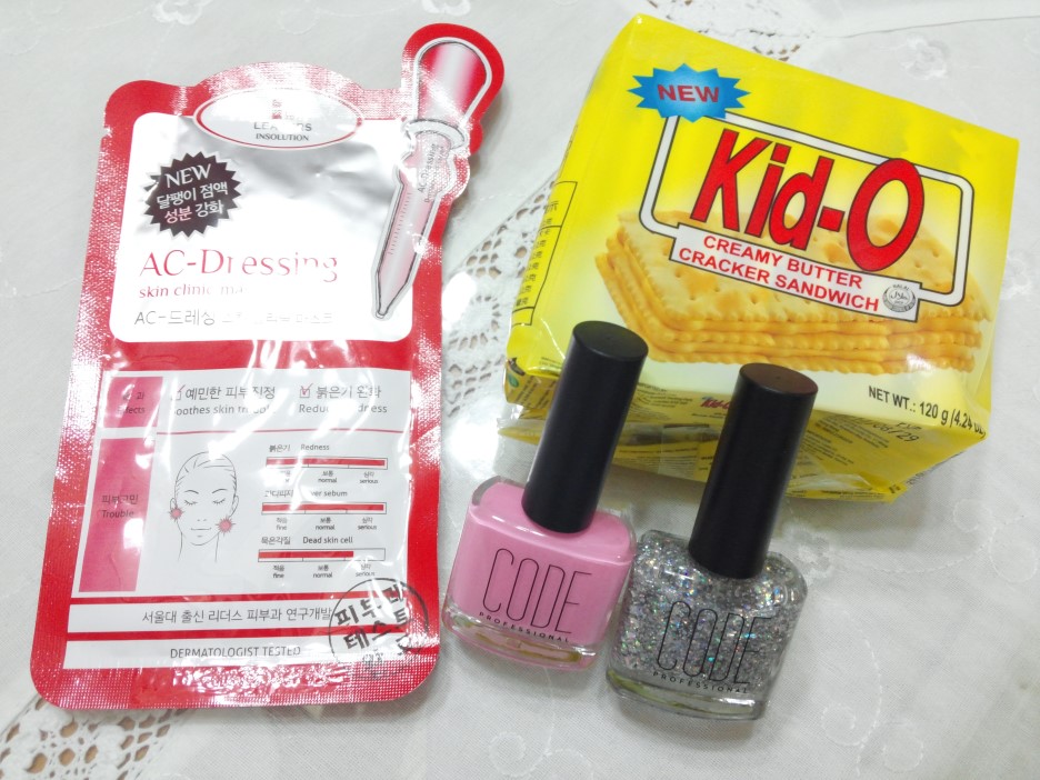 AC드레싱 팩이랑 코드네일 2가지색상과 키도 과자도 보내주셨어요!
