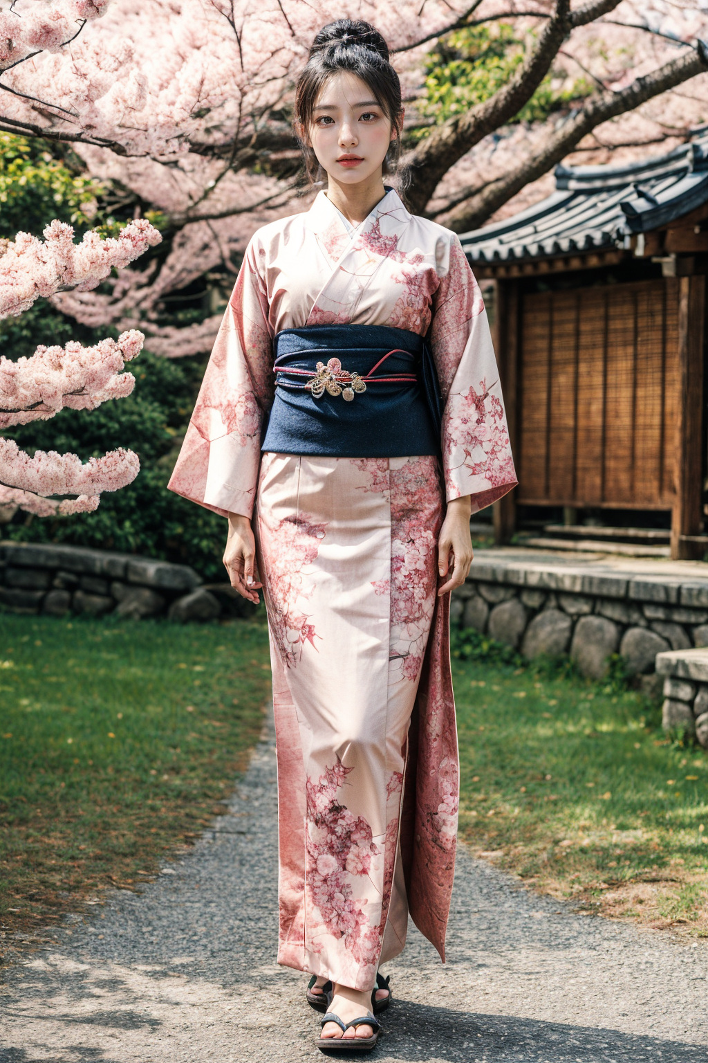 일본 여행에서 기모노 입고 사진 찍는 여친 – Ai 그림 룩북