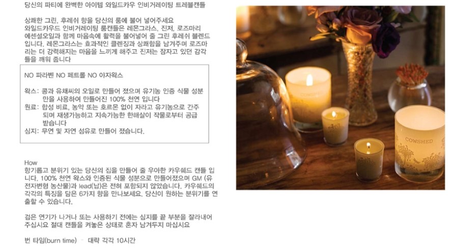 더군다나 제가 지금 소개해드릴 캔들은 천연 화장품 카우쉐드인 만큼 콩과 유채씨의 오일로 만들어 졌으며