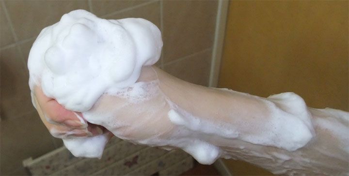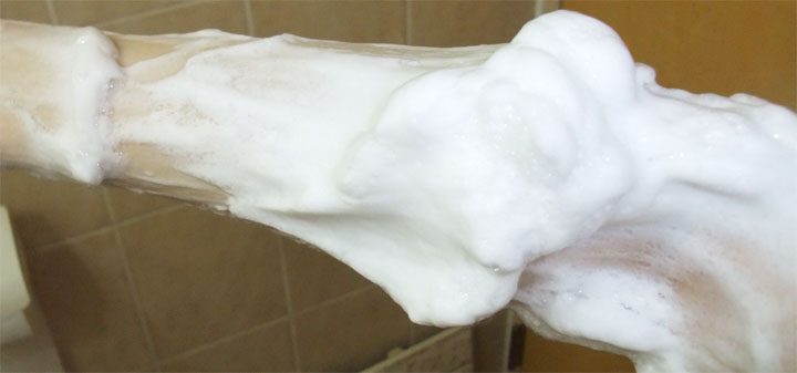 이제 한번 슬슬 사용해볼께요~!! 얼마나 거품이 잘나는지 살펴보았어요.. 어머나~!!! 살짝만 문질렀는데에도 거품이 아주 잘나더군요~!