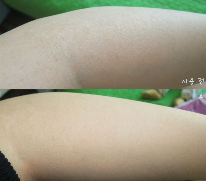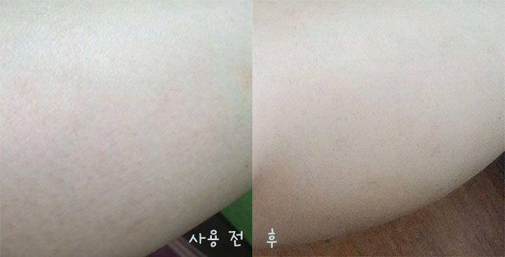 다리 역시 사용하기 전과 후의 모습입니다... 깨끗하고 보다 촉촉해진 종아리 부분..ㅋㅋ