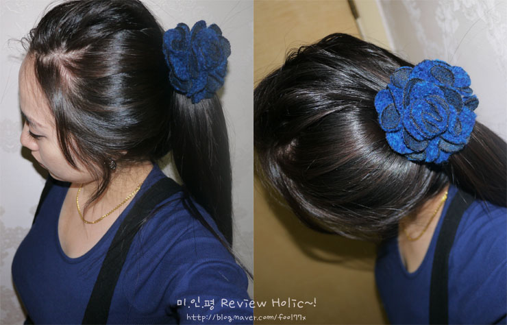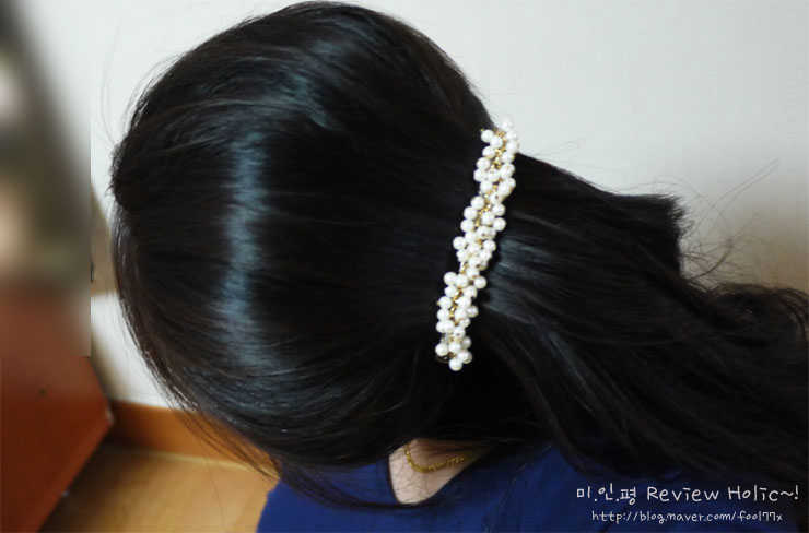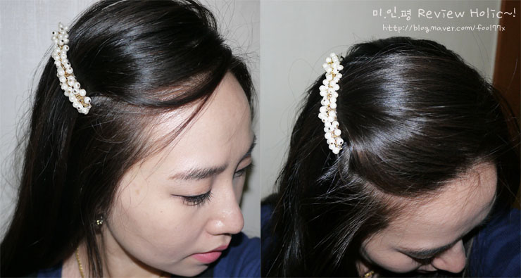직접 착용한 모습... 머리숱이 많으신 분들에겐 이런식으로 사용해도 이쁘답니다..^^