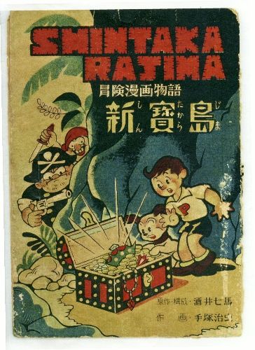 오리지날판은 현재 보유하고 있는 양이 적고 종래 일반인이 읽기가 어려운 상황이기 때문에 11월 3일이 탄생 80년을 맞이하는 '만화의 신' 의 원점에 축하할 수 있는 귀중한 출판물이 될 것 같습니다. 장편 모험 활극 '신보물섬' 은 1947년 1월에 오사카의 작은 출판사(小出版社 : '小' 가 '작다' 라는 의미인지 아니면 출판사의 이름인지 확인할 길이 없내요.)로 부터 간행된 테즈카의 단행본 데뷔작. 컷과 컷의 전개로 스피드감 등을 표현하는 영화적 기법을 알린 기념비적인 작품으로, 당시 40만부가 팔릴 정도로 인기가 좋아 베스트셀러가 되기도 했습니다. 소년시대의 이시노 쇼타로(石ノ森章太郞), 후지코F.후지오(藤子F.不二雄), 마츠모토 레이지(松本零士) 등 후진들에게 준 영향의 크기는 '신보물섬 쇼크' 라고 칭해질 정도입니다.