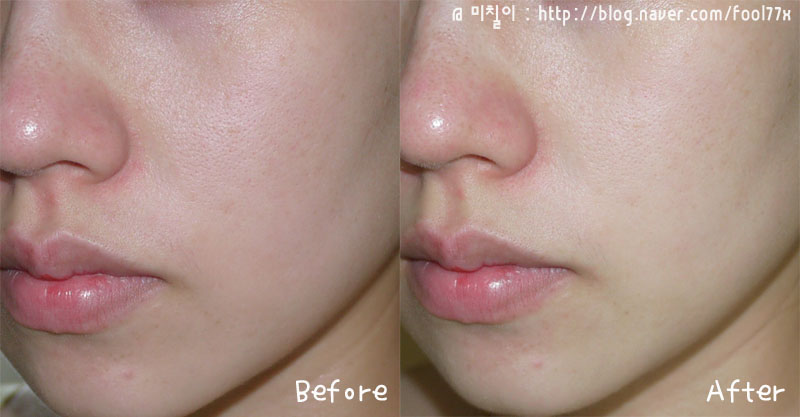 그냥 얼핏봐선 모르겠나요? 자세히 보시면 모공이 두드러짐이 아주 확 다르다는걸 느끼실겁니다..
