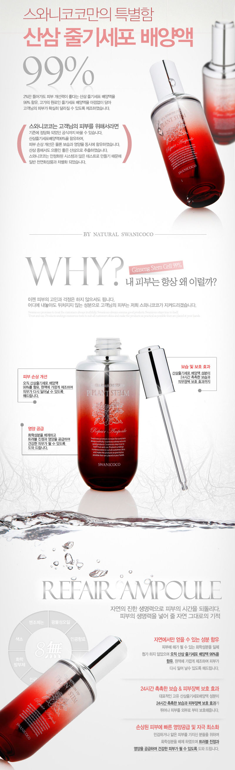 산삼화장품 > 스와니코코 : 산삼100% 줄기세포 앰플 / 고영양에센스