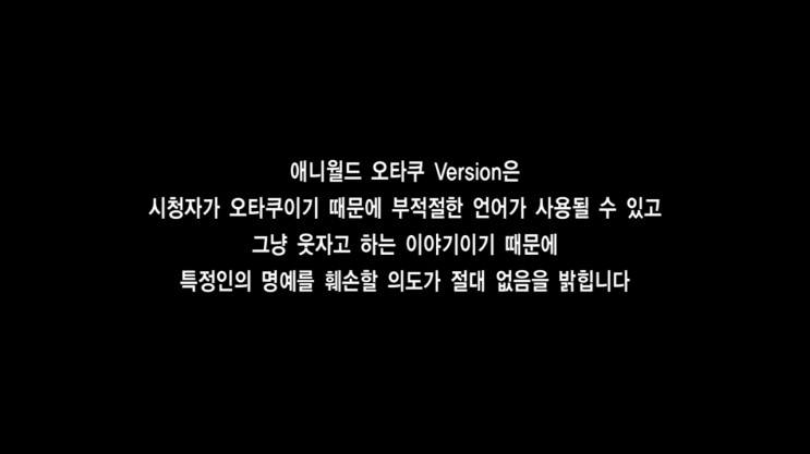 이런 관점에서 봤을 때 '애니월드 오타쿠판' 의 출연자들은 오타쿠라 불릴 수 있는 조건에 대해서 단 1개의 조건이라도 만족시키고 있는지 되묻고 싶을 정도로 오타쿠라 언급하기 힘들 정도로 조악한 이야기로 20분 이상을 구글링으로 얻어낼 수 있는 정보들로 썰을 풀고 있습니다. 본인들도 그점을 잘 알고 있는 진격의 거인 코믹스판 속표지에 쓰여진 문장에 대한 뜻풀이를 그 자리에선 대단한 정보다! 라고 언급했지만 자막으로 구글링으로 2초만에 찾으실 수 있다! 라며 자신들이 오타쿠라 지칭한 맴버들의 뒷통수를 날려주었습니다.
