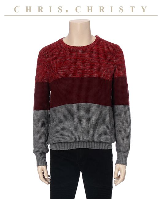 바로 크리스크리스티 니트로, 레드 와인 그레이가 배색된 라운드 니트라고 해요~