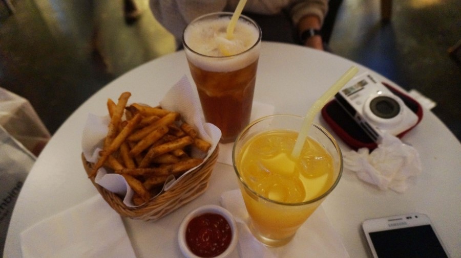 각자 마실 칵테일을 고르고 맛있는 감자튀김도 주문했어요 ^ㅡ^
