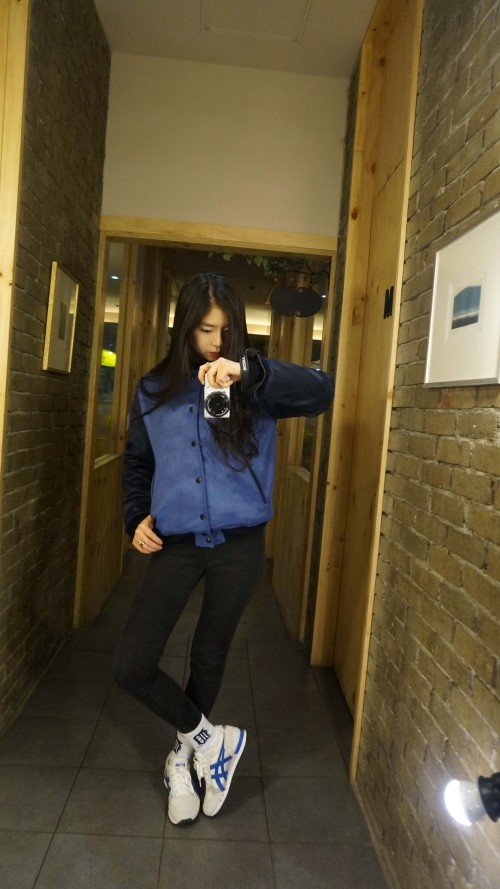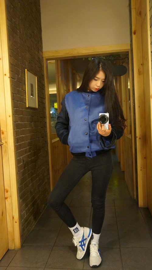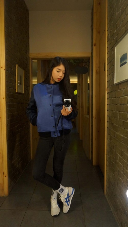 핫별의 데일리룩/데일리코디/야구점퍼코디/야구잠바코디/스타디움코디/스웨이드 야구잠바/오니츠카타이거 콜로라도85