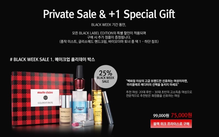 글로시박스 패밀리세일, 블랙위크 25%할인 (단 3일간)
