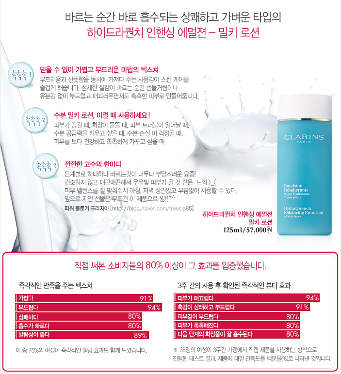 클라란스의 파란에센스와 인핸싱 에멀젼에 대해 알고싶으시다면 위의 그림을 클릭해주세요~!