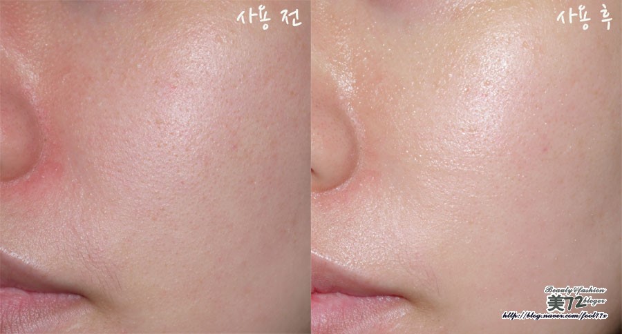 사용 전의 피부와 사용 후의 피부 상태입니다.