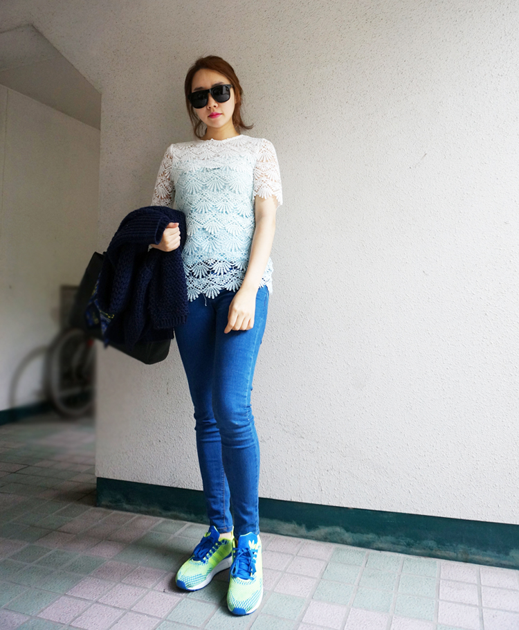가볍게 놀러갈때 깔끔하게 멋내기 좋은 아이템, 레이스 블라우스와 함께한 편안한 데이트룩!