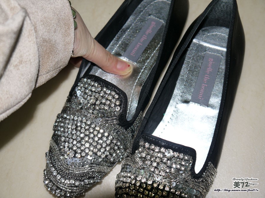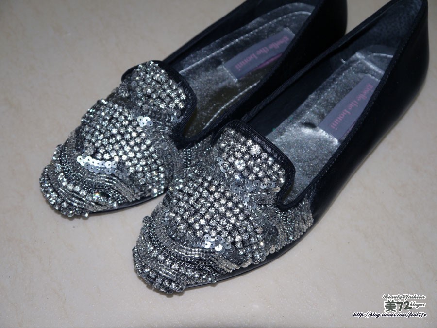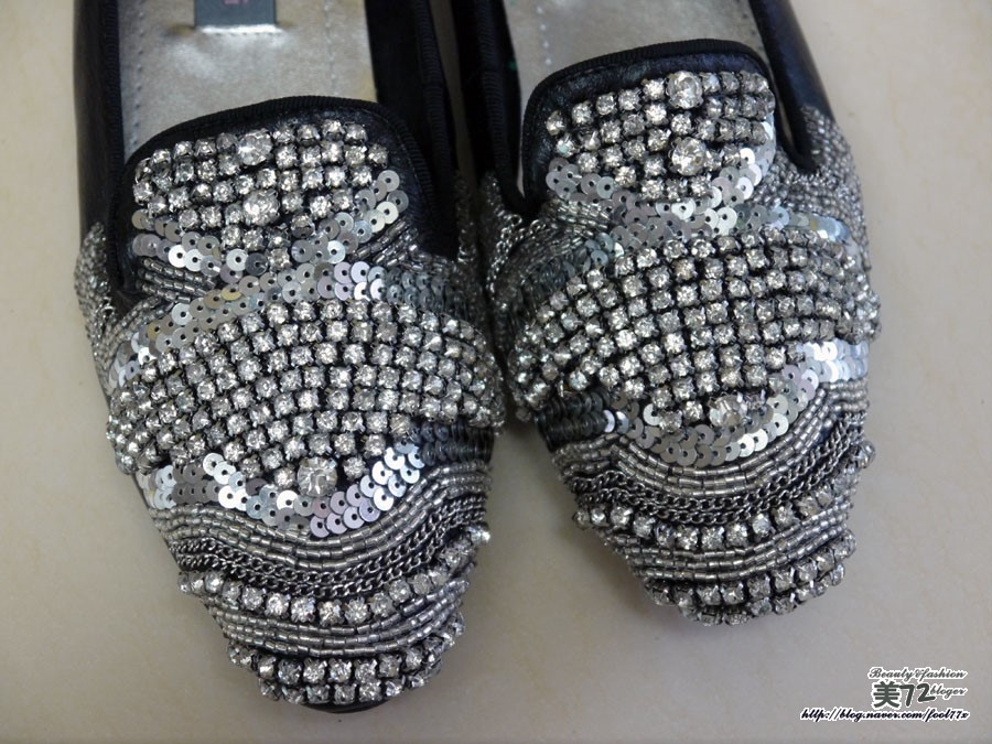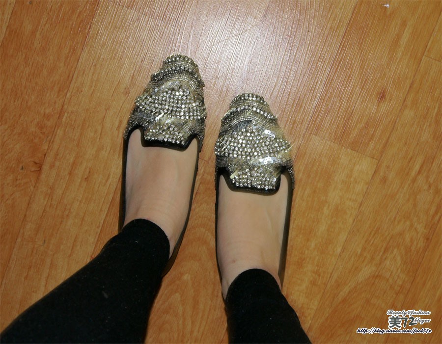 스팽글과 함께 비즈 장식이 들어간 플랫슈즈! 완전 블링블링 제대로 포인트 주기에 그만이더라고요~