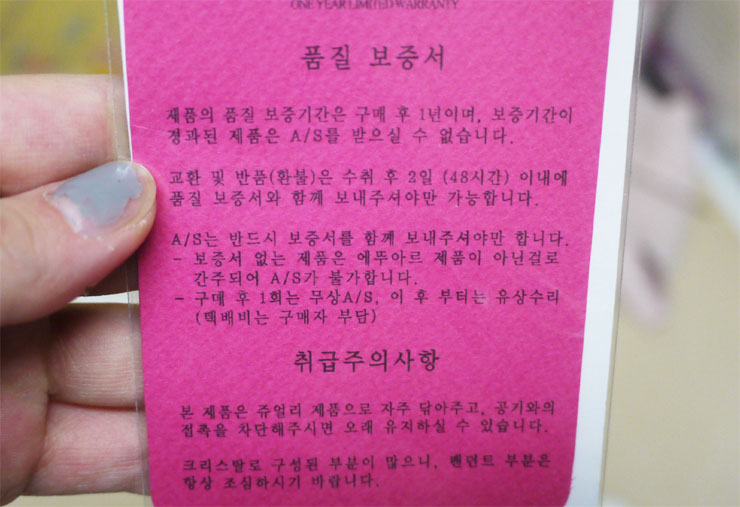 에뚜아르는 보증서가 있어서 1년 동안 무상 A/S 가능하신거 아시죠?^^
