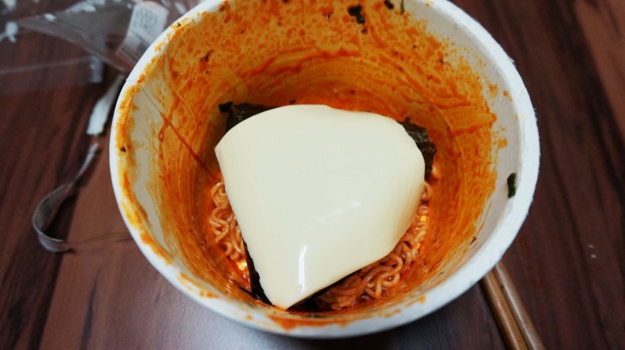 거의 다 먹고 삼각김밥과 치즈를 투척하고 ! 전자렌지에 1분 30초 돌렸어용 ㅎㅎㅎㅎ