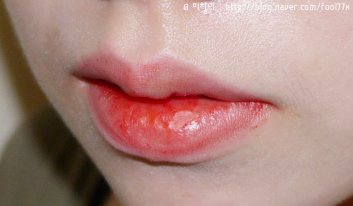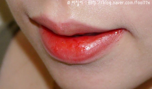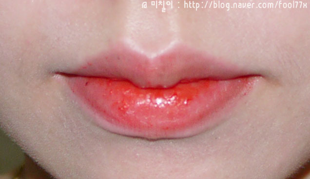 밀착력은 바르는 즉시는 물이 안드는것 같지만, 살살 발라주면 조금씩 스며들어 입술에 밀착이 되는 그런 제품입니다.