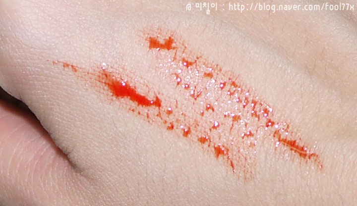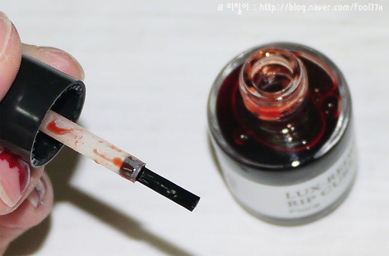 입술에도 역시 물이 약간 겉돌면서 조금씩 스미는 느낌을 주는 틴트예요!