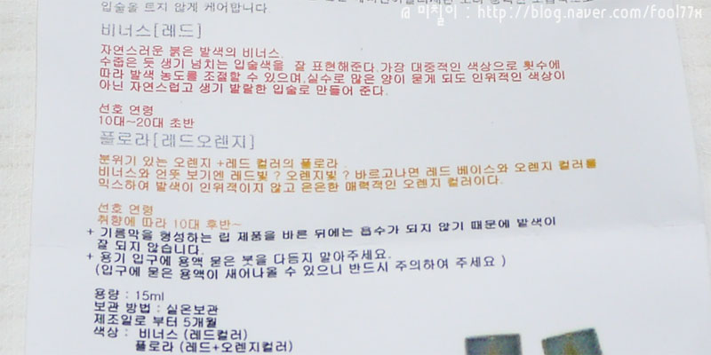 저처럼 입술색 없는 분들 틴트 좋아하시더라구요~ 잘 안지워지고 오래가기 때문에 손이 자주 간다구요!