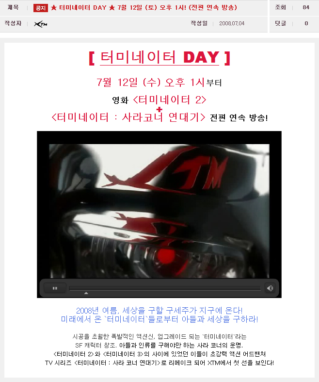 <span class="pcol1 itemSubjectBoldfont">미드 '터미네이터 연대기' 전편 방송한다고 합니다. 하지만 ...</span> 연예/화보 조회 0 원본보기 0 인기도 점수 0 0 요약 주말에 할 것이지 왜 평일이냐! 게다가 오후 3시부터 시작은 또 뭐냐! 이날 약속이 있어서 저녁 7시에 약속이라 제대로 보지도 못한단 말이다. 원본 페이지로 이동 추천 콘텐츠 중견 기업 연봉 수준 0 밤에 입으면 인싸각 0 홈쇼핑 모델 0 각종 동물들의 근육.jpg 0 탁재훈식 개드립 0 하아... 우리는 언제쯤 이렇게 될 수 있을까요? 0 관련 이미지 클럽의 흔한 문화 6536 클럽움짤 몇개 6926 야릇한 얼굴과.. 6256 이런엉덩이 처음만져봄 10305 체육녀들의 바디클라스 6262 상당히 아쉬운 결말 5408 지스타 이은혜 3702 홀딱벗구 셀카 7351