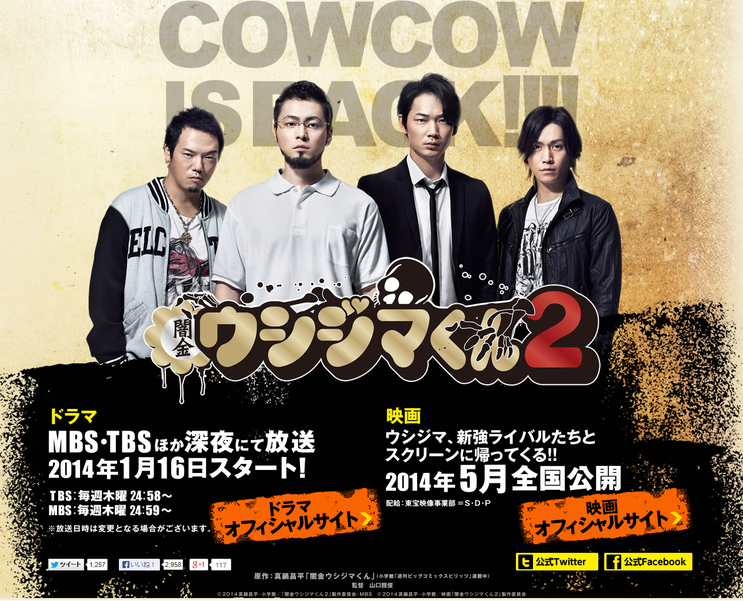 마나베 쇼헤이 원작 망가 '사채꾼 우시지마' 가 2012년 AKB48 오시마 유코 캐스팅으로 화제가 된 '극장판 사채꾼 우시지마' 에 이어 2014년 '극장판 사채꾼 우시지마 파트2' 가 2014년 05월 개봉만 결정이 되었습니다.