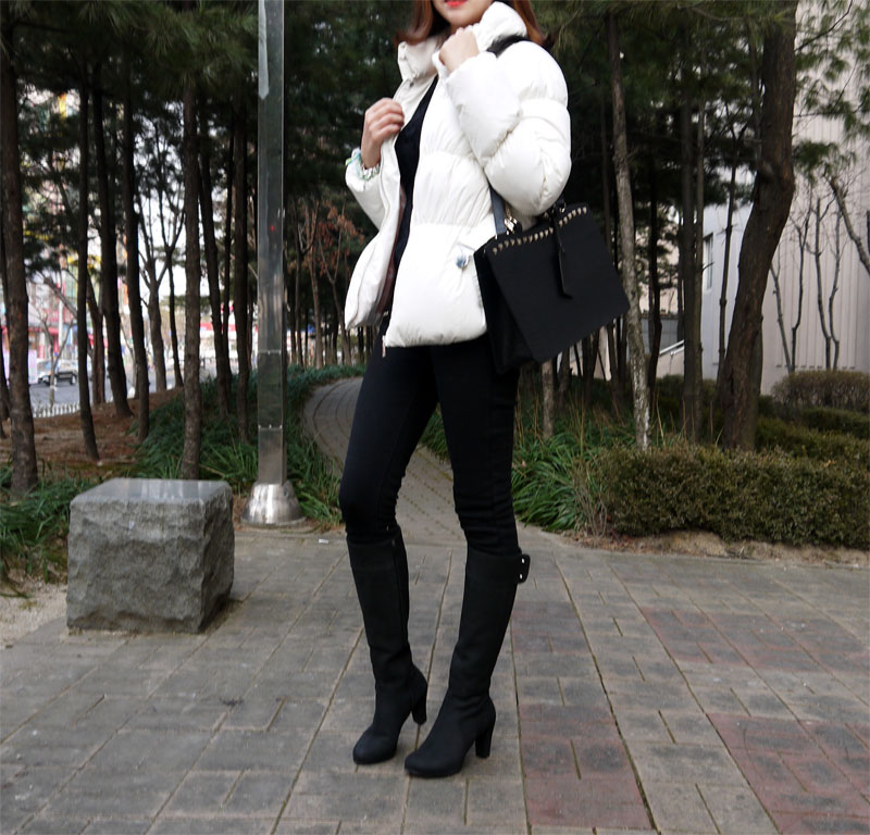 화이트패딩코디, 블랙 앤 화이트가 가장 무난한듯 하죠?^^