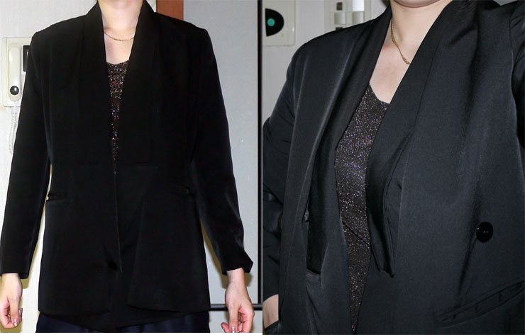 요건 앞면 덮장을 안쪽으로 넣어서 입어본 모습입니다.