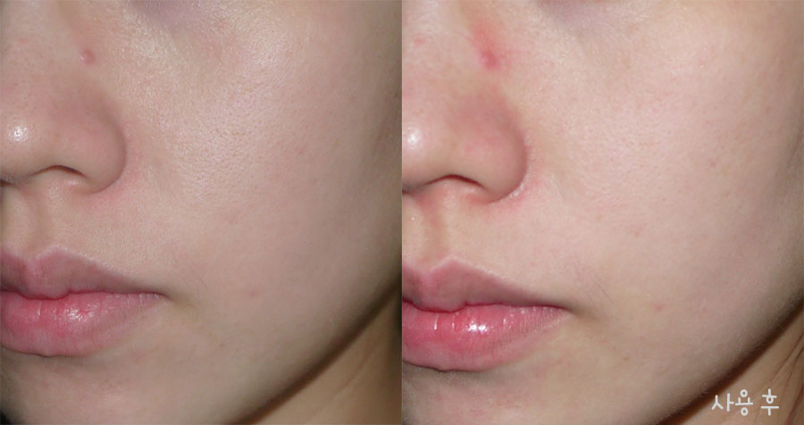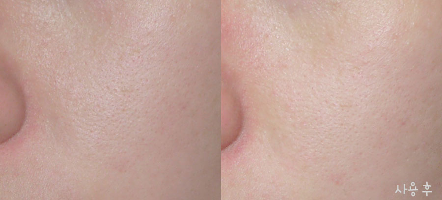 사용 전과 사용 후의 모습... 왜 두드러지던 모공이 줄어든 느낌인거죠?ㅋㅋㅋ