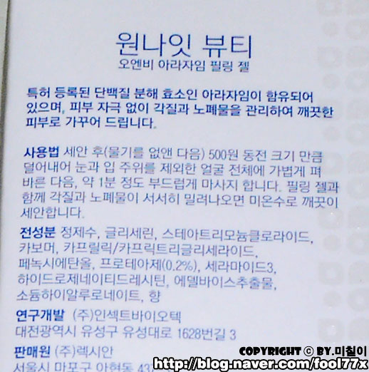 아라자임 필링젤 > 원나잇뷰티 아라자임 ONB 필링젤 /