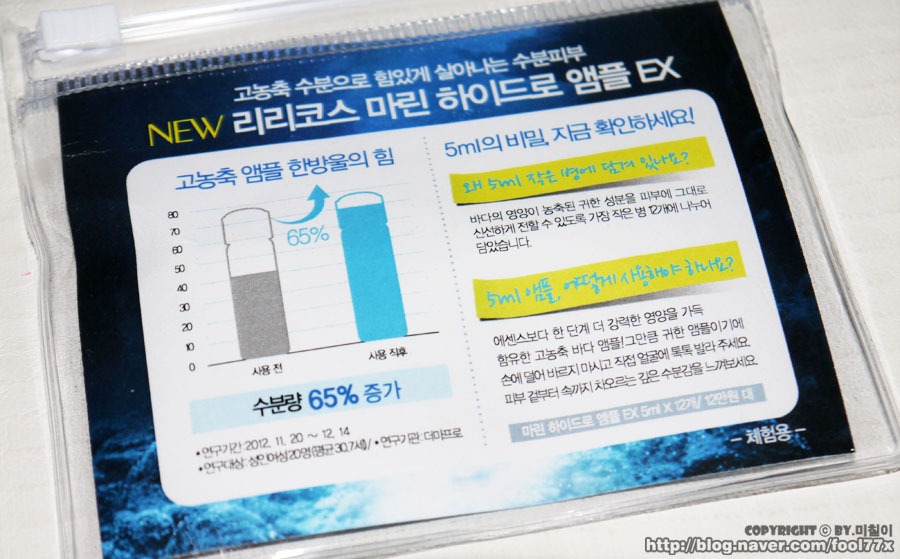 오늘은 리리코스의 베스트셀러 앰플!! 바로 리리코스 하이드로 앰플 EX 수분앰플을 소개할께요~