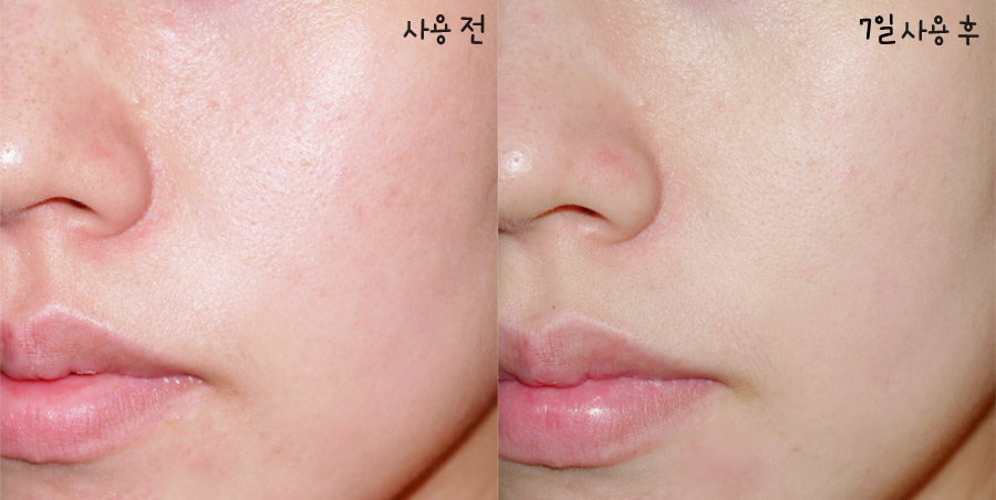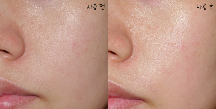 약간 피부가 좀 환해지고, 피부결이 깔끔해진 느낌이 들어요... 군데군데 있던 붉은기도 사라진것 같구요..