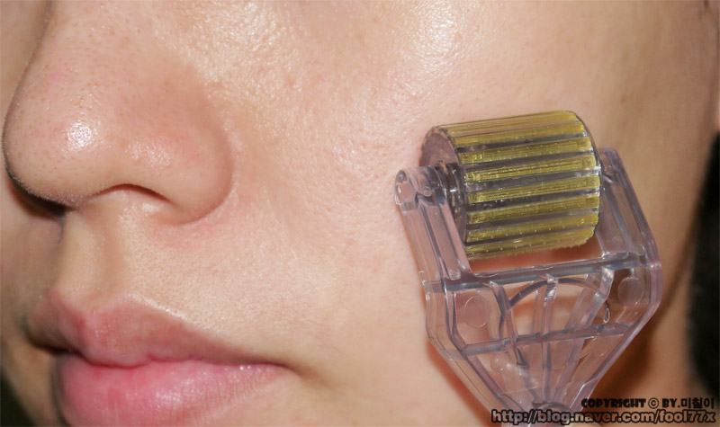 그리고, 앰플을 전체적으로 충분히 도포한후에 mts 롤러를 피부전체적으로 사용해줍니다.