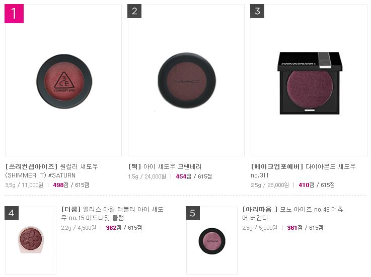 어멋!!! 겟잇뷰티 버건디 아이섀도우 순위에서 1위는 쓰리컨셉아이즈 원컬러 섀도우 가 차지할줄이야!!