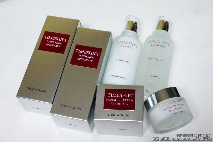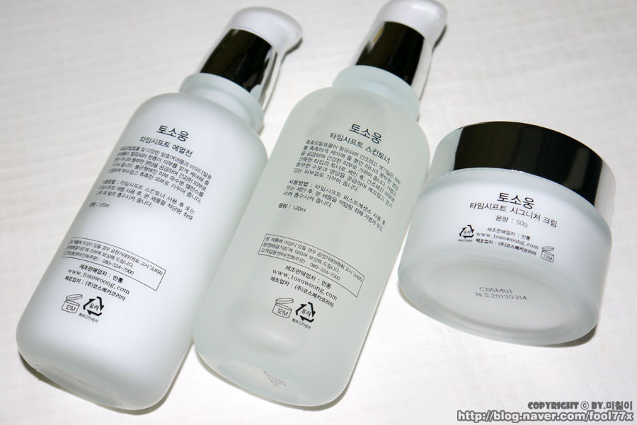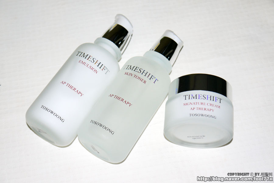 토소웅 타임시프트 스킨토너와 에멀젼, 그리고 크림 세가지 제품인데요~
