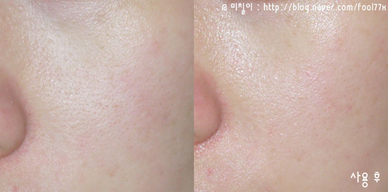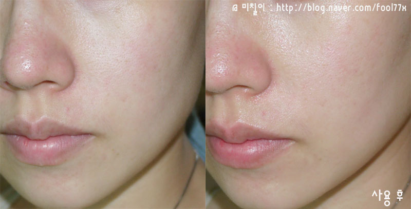 얼굴에 직접 사용해보았습니다. 좌측은 사용전이며 우측은 사용한 모습이예요!