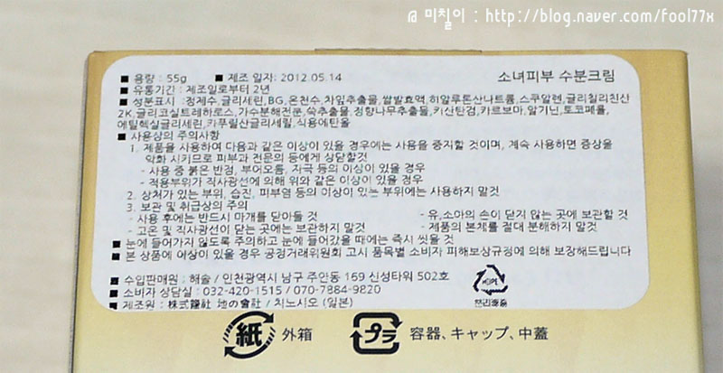 수분크림추천 > 치노시오야 : 소녀피부 수분크림 / 여름수분크림추천