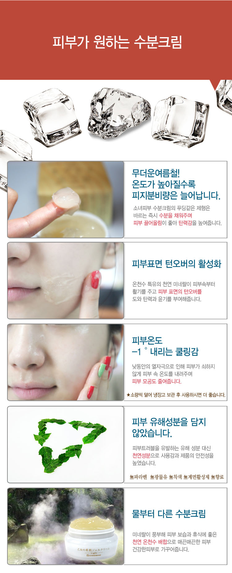탄력과 윤기.. 그리고 쿨링감... 이 모든걸 갖춘 수분크림이 치노시오야의 소녀피부 수분크림이라고 해요!