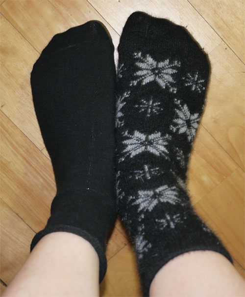 양말 두개 같이 신어봤어요...