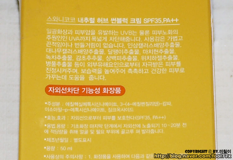 스와니코코 내추럴 허브 선블럭 크림 50ml / 28,000원 |