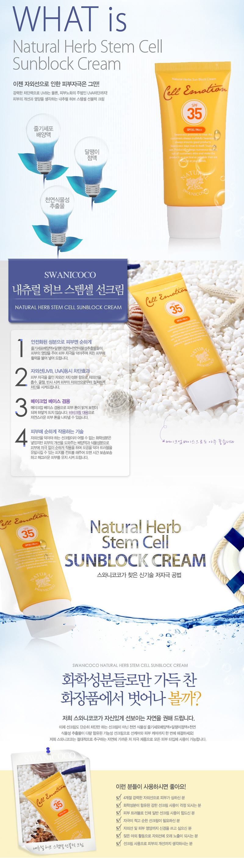 바로 스와니코코의 내추럴 허브 스템셀 선크림이예요!