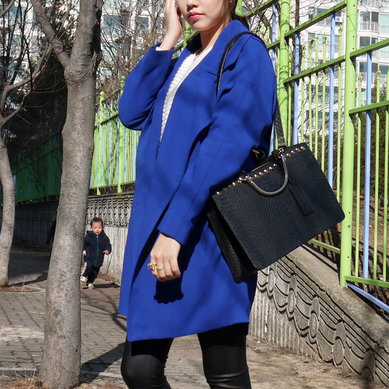오늘의 데일리룩은, 코발트블루 컬러의 코트가 메인이구요..ㅋㅋ