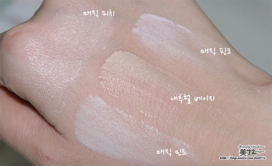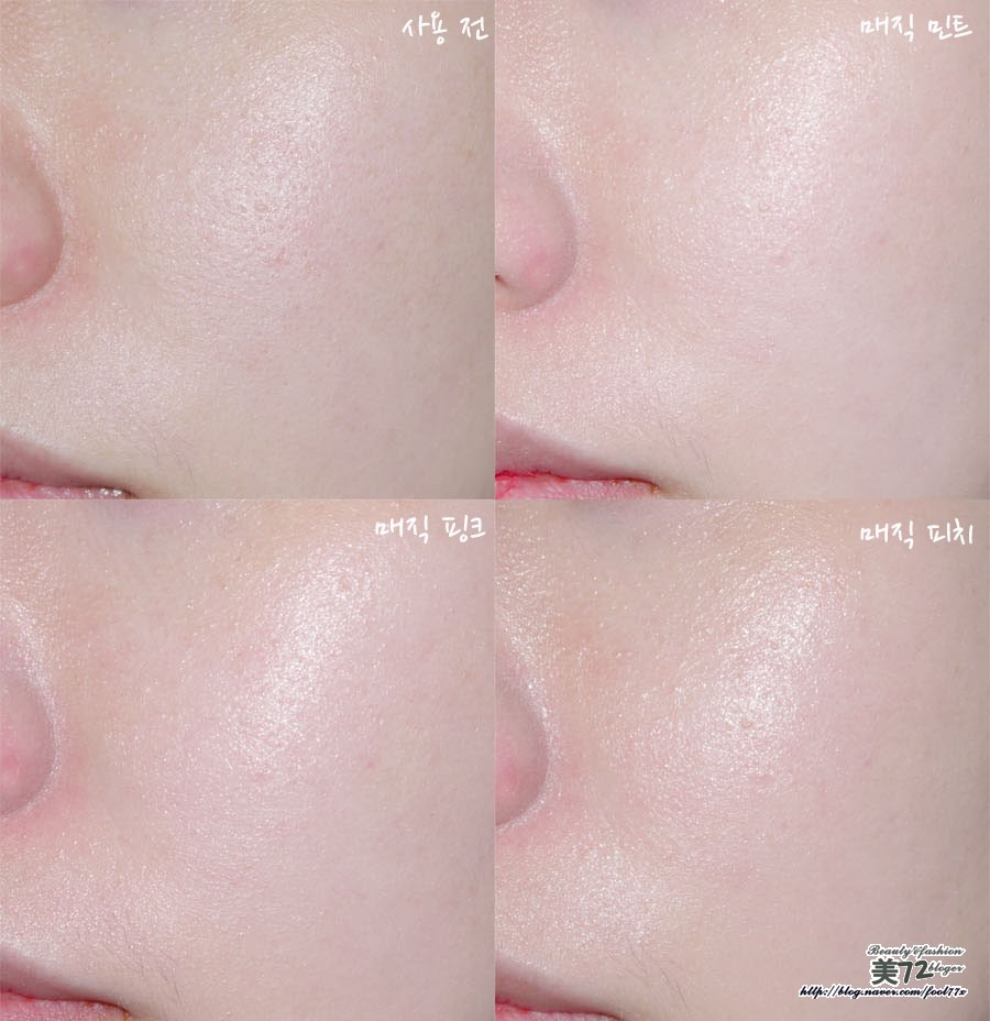 창백한 피부이신 분들은 매직 핑크!! 전체적으로 붉은 톤에 홍조 있으신 분들은 매직 민트 추천해드립니다^^