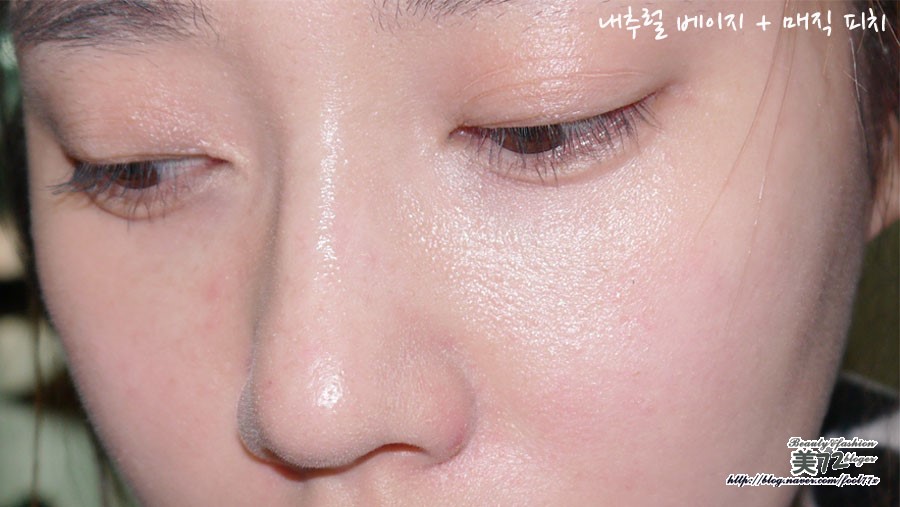 내추럴베이지의 애니쿠션만 사용할때 피부랑, 매직 피치 제품 같이 사용할때 피부는