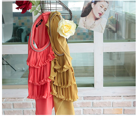 프릴? 러플? 아코디언 형태의 주름이 3단으로 되어있어서 보다 멋스러운 디자인을 지니고 있답니다.