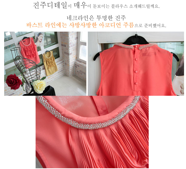 그리고 목 네크라인 부분에는 제품 설명에서 처럼 진주 디테일이 아주 돋보여요~ㅋ