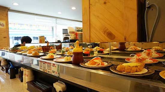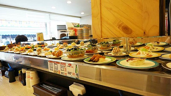 머리를 다듬은 후, 배고파서 회전초밥 먹으러갔어요 ! 초밥 먹기전에 핫바를 먹었더니..