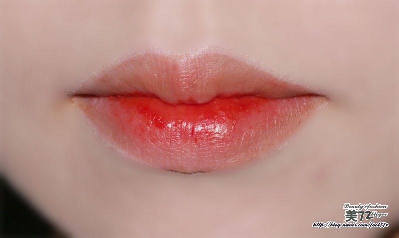 그리고 하단 사진은 토니틴트에 섹시레드 컬러의 립마스터 제품을 입술 안쪽에 살짝 바른 모습이예요~