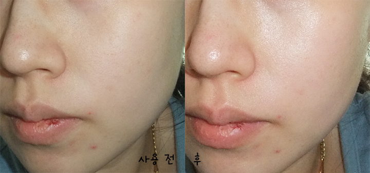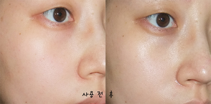 역시 사용전 후의 모습...번들거림이 많이 없는 제품이라 산뜻한걸 좋아하시는 건성이신 분들에게 좋은 제품일듯 싶어요...